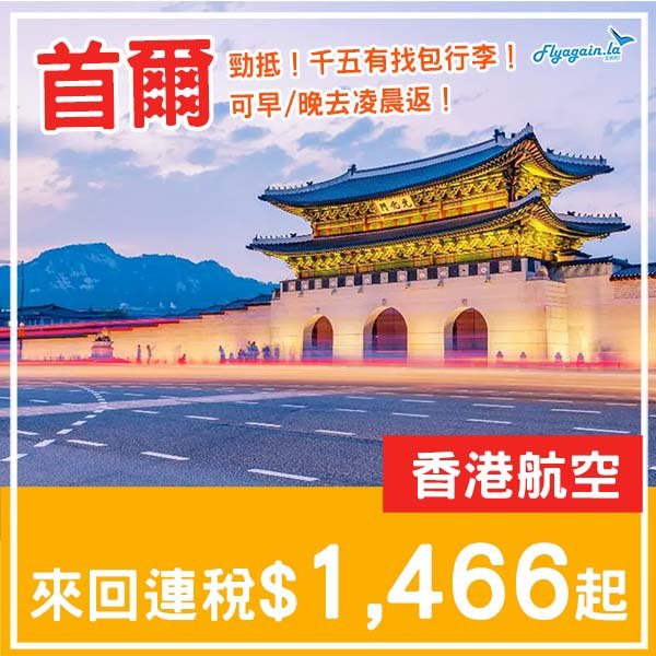 【首爾】等咗一排又有啦!千五有找包行李!香港航空來回首爾連稅$1,466起!4月至6月指定日子出發