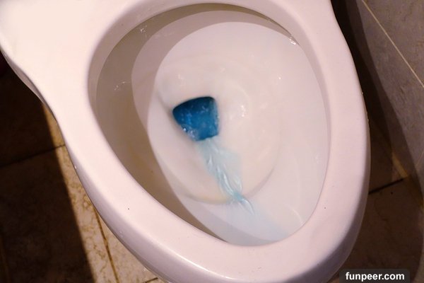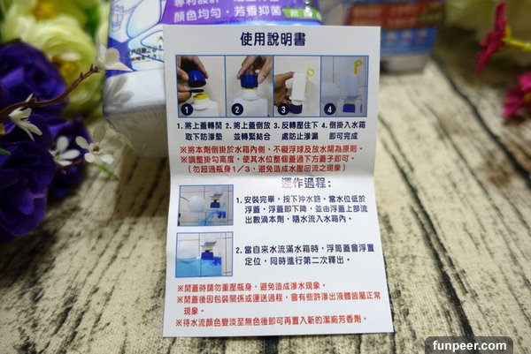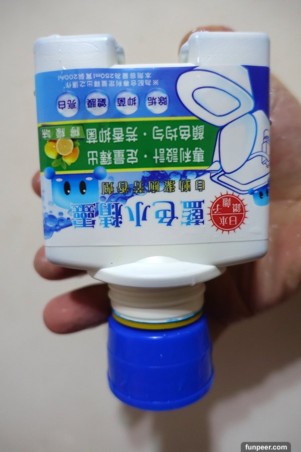 要拿去馬桶水箱掛時要記得反轉往下且緊壓住下面,以免裡面的液體不小心滲漏出來。