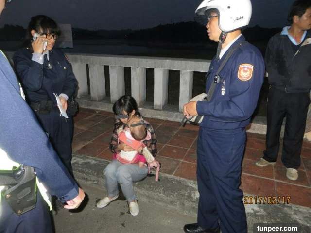 圖說:被救起的陳女,一身溼漉漉,一旁員警則予安撫勸說。 大 中 小 2/17日傍晚時分,一名手抱女嬰女子,在嘉義市新生路搭計程車到仁義潭水庫,下車後即翻過水庫溢洪道旁水泥護欄直奔水庫底,搭載女子過來的蕭姓計程車司機見情況不對,立即下水搶救,並一手拉住女子及幼兒阻止其跳水,同時撥打119電話求救,內政部警政署保安警察第七總隊第二大隊仁義潭小隊小隊長陳信彰獲知後,立即率警員黃順男趕赴現場處理。陳信彰、黃順男兩位員警到達後,番路分駐所警員陳崇瑋、李佑如亦隨後趕到,現場見該名現79年次陳姓女子攜帶1歲女兒坐在仁義潭堤防上,陳女全身濕透,而胸前環抱女兒哭啼不停,因見該名陳女仍心情低落,員警遂不斷安慰勸說,並經關懷瞭解得知,陳女係嘉義人嫁到桃園,因與先生發生口角爭執致心情不佳,一時想不開才攜女搭計程車前往仁義潭跳水。因仁義潭小隊未配置女警,為安撫母女情緒及感受無微之照料以打消自殺念頭,遂由嘉義縣警察局中埔分局番路分駐所派遣女警予以持續關懷,並由番路分駐所警員李佑如先予安撫陳女,同時協同消防隊將毛毯披在陳女與稚女身上,然後護送陳女及稚女先至番路分駐所休息安置並通知家屬。※提醒您:自殺不能解決問題,勇敢求救並非弱者,生命一定可以找到出路。透過守門123步驟-1問2應3轉介,你我都可以成為自殺防治守門人。