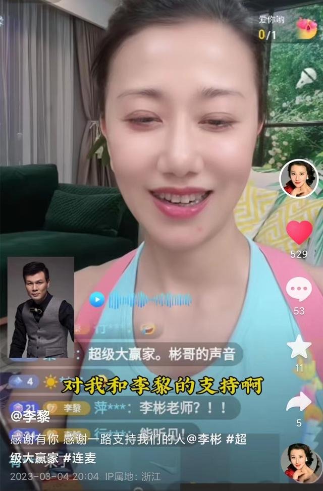 李彬首先跟網友們打招呼:「李黎直播間的網友們,大家好啊,謝謝你們對我和李黎的支持。我現在雖然身體仍有問題,但已在慢慢調整,會越來越好的。希望大家多多支持李黎,李黎是一個很實在的人。」