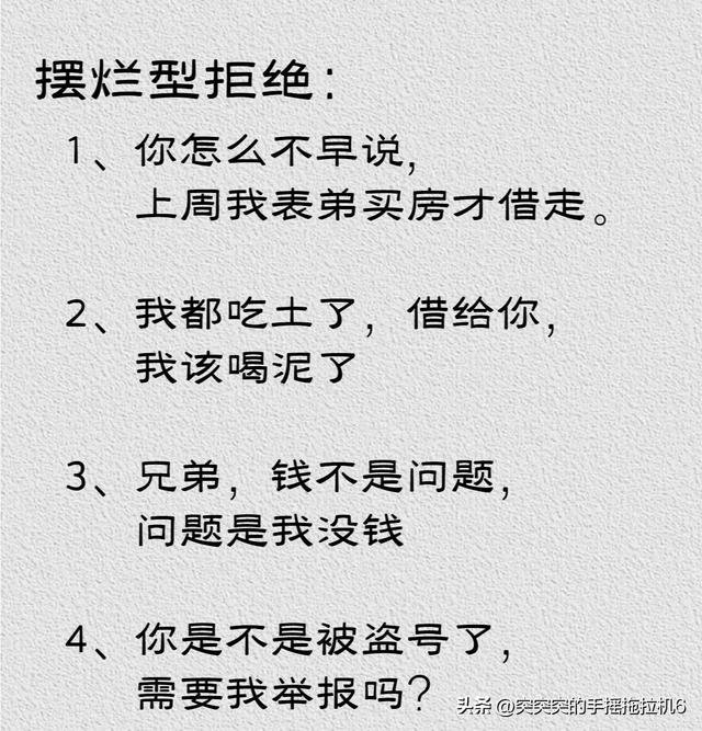 第二種是「擺爛型拒絕」,強調自己不是不想借,是借了自己就要喝西北風了: