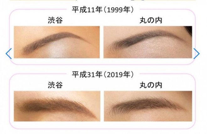 相對1999年的涉谷和丸之內凌角分明的細眉妝,現在的潮流傾向筆觸柔和的粗眉妝,意圖「不讓地區及年齡的差別顯得明顯」。